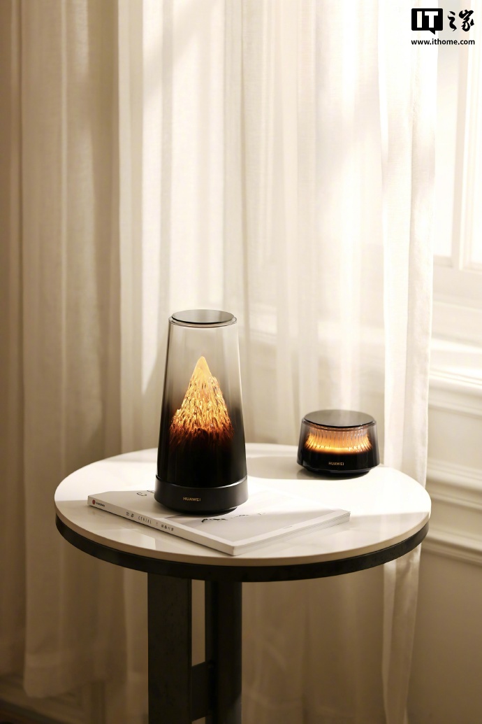 从图片来看,华为路由 X3 Pro 主体呈圆柱形,上半部分是透明的,能够展示内部的灯光,提供类似“日照金山”“雪落满山”的效果,被网友评价为“桌面艺术品”“精致摆件”。照片还显示,这款路由器有子母两个部件,疑似支持无线 MESH 组网。
